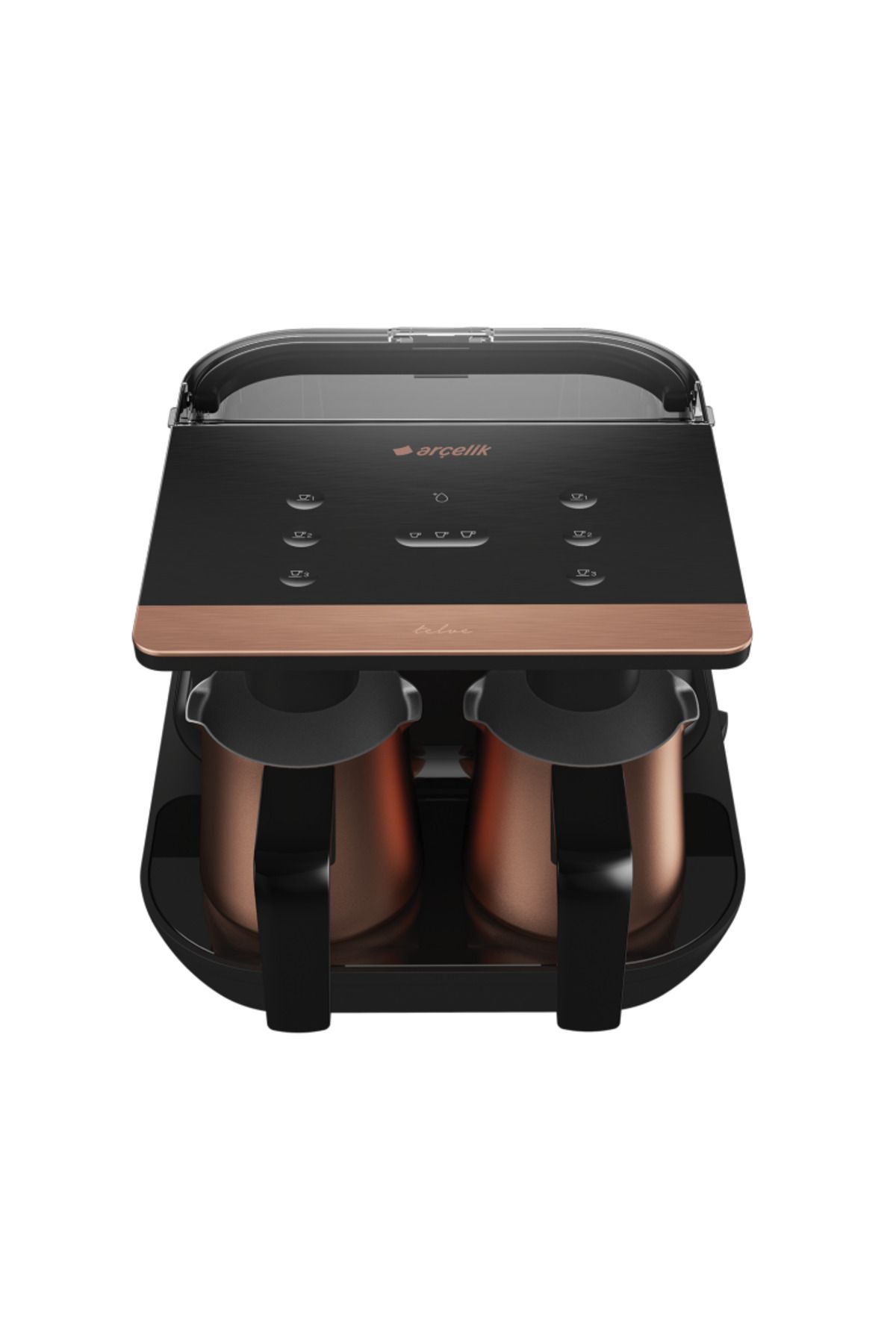 - Dayanıklı çelik malzeme kullanımı sayesinde uzun ömürlü ve sağlam bir yapı sunar; - 6 fincan kapasitesi ile birden fazla kişiye aynı anda Türk kahvesi servisi yapma imkanı sağlar; - Damlama emniyeti özelliği ile temiz ve düzenli bir kullanım deneyimi sunar; - Taşma emniyeti, kahve haznesinin taşmasını önleyerek kahvenizin her zaman ideal kıvamda olmasını sağlar; - Modern tasarımıyla mutfak dekorasyonunuza şık bir dokunuş ekler; - Çelik cezve malzemesi, kahvenizin lezzetini korurken dayanıklılığı artırır; - Otomatik kapanma fonksiyonu enerji tasarrufu yapmanızı ve güvenliğinizi artırmanızı sağlar; - Sesli ikaz sistemi, kahvenizin hazır olduğunu anında bildirerek pratik kullanım imkanı tanır;