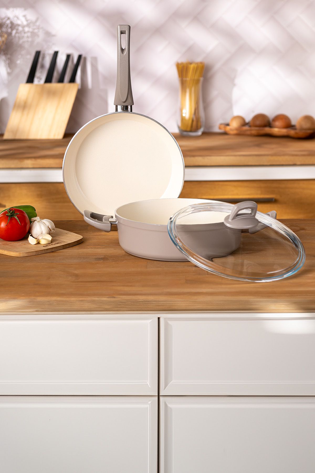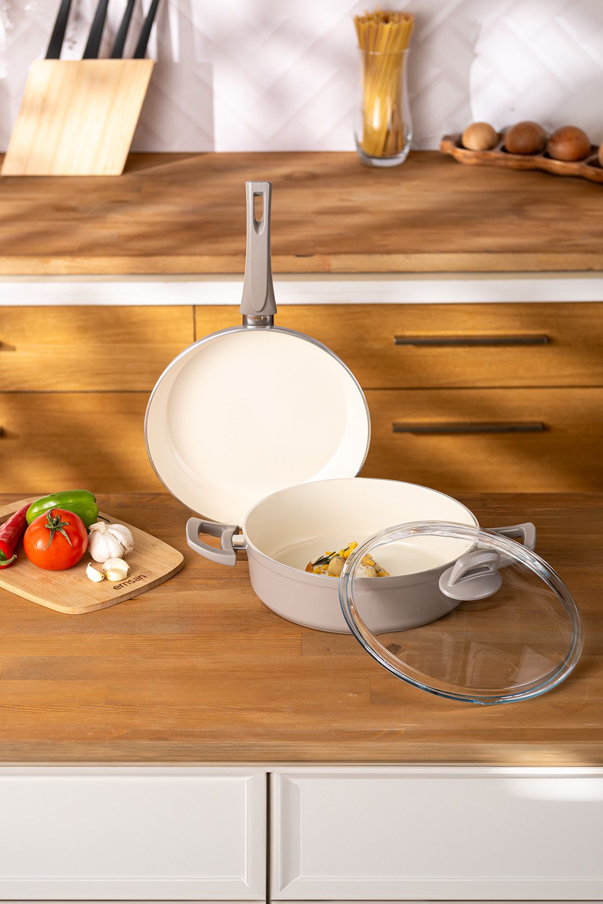Crystal 3 Parça Tencere Tava Seti Bej
