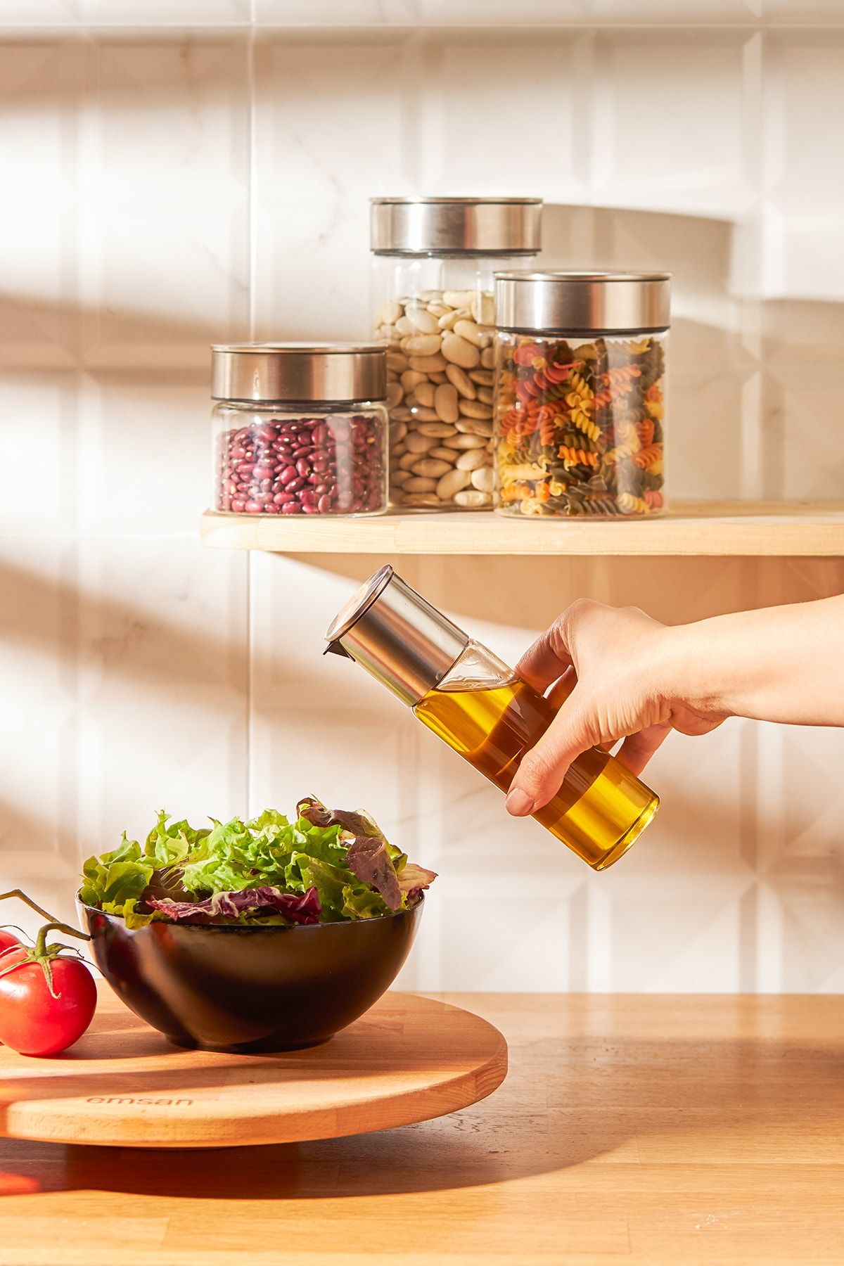 Şık ve modern tasarımı ile mutfak dekorasyonunuza estetik bir dokunuş ekler; Cam materyali sayesinde kolay temizlenebilir ve hijyenik kullanım sunar; 200 ml kapasitesi ile sık sık doldurma ihtiyacını ortadan kaldırır, pratik bir kullanım sağlar; Dayanıklı cam yapısı uzun ömürlü kullanım vaat eder;