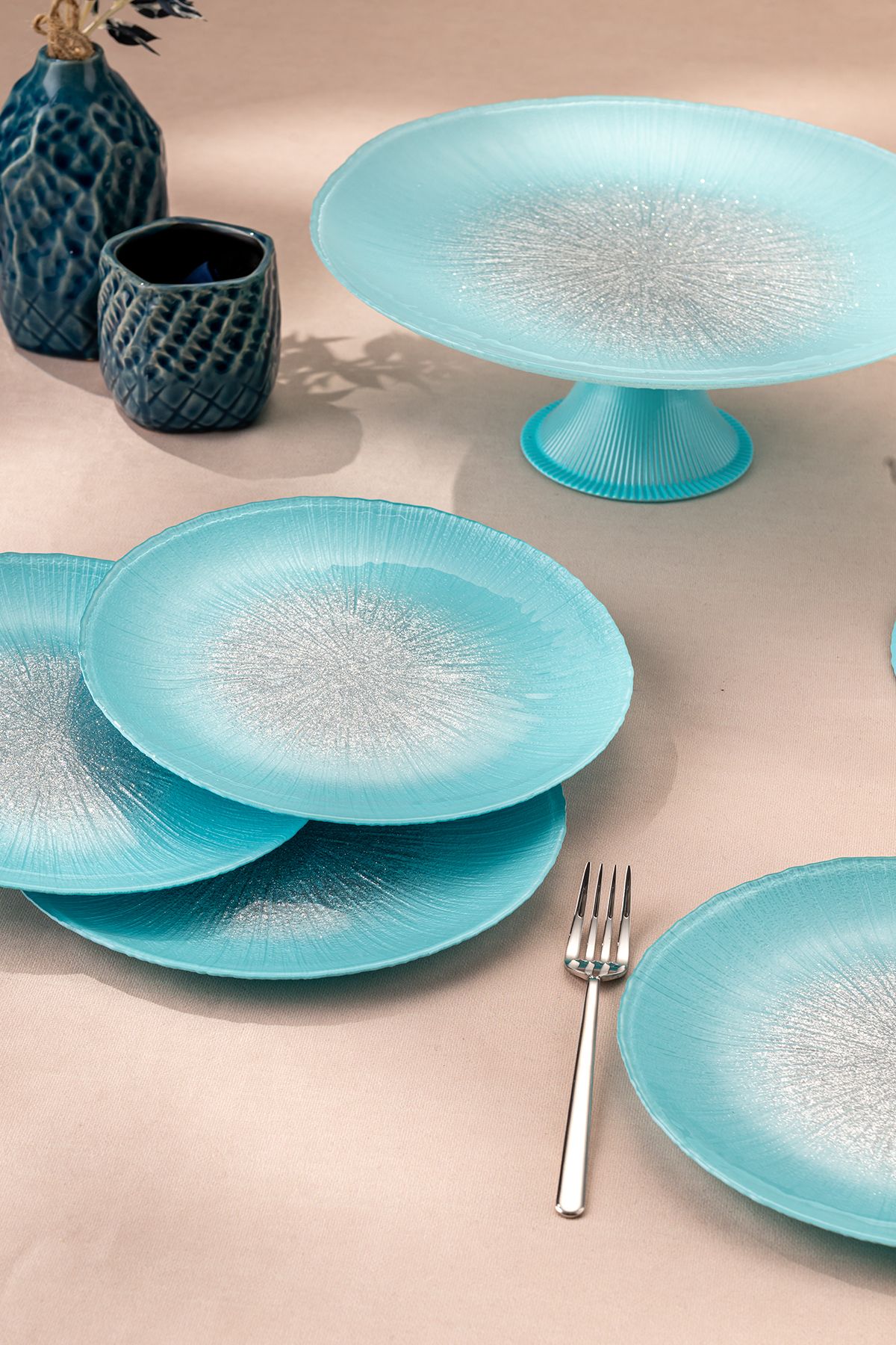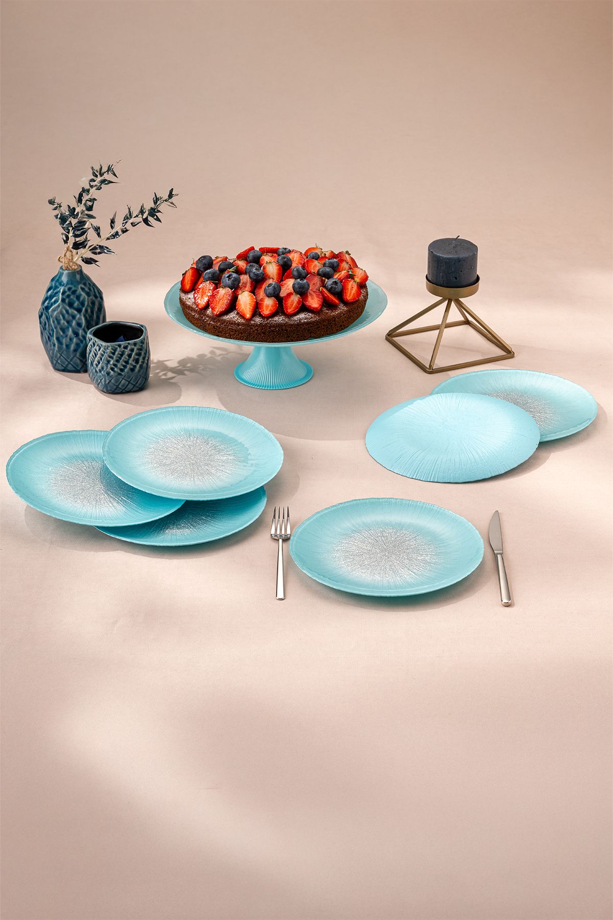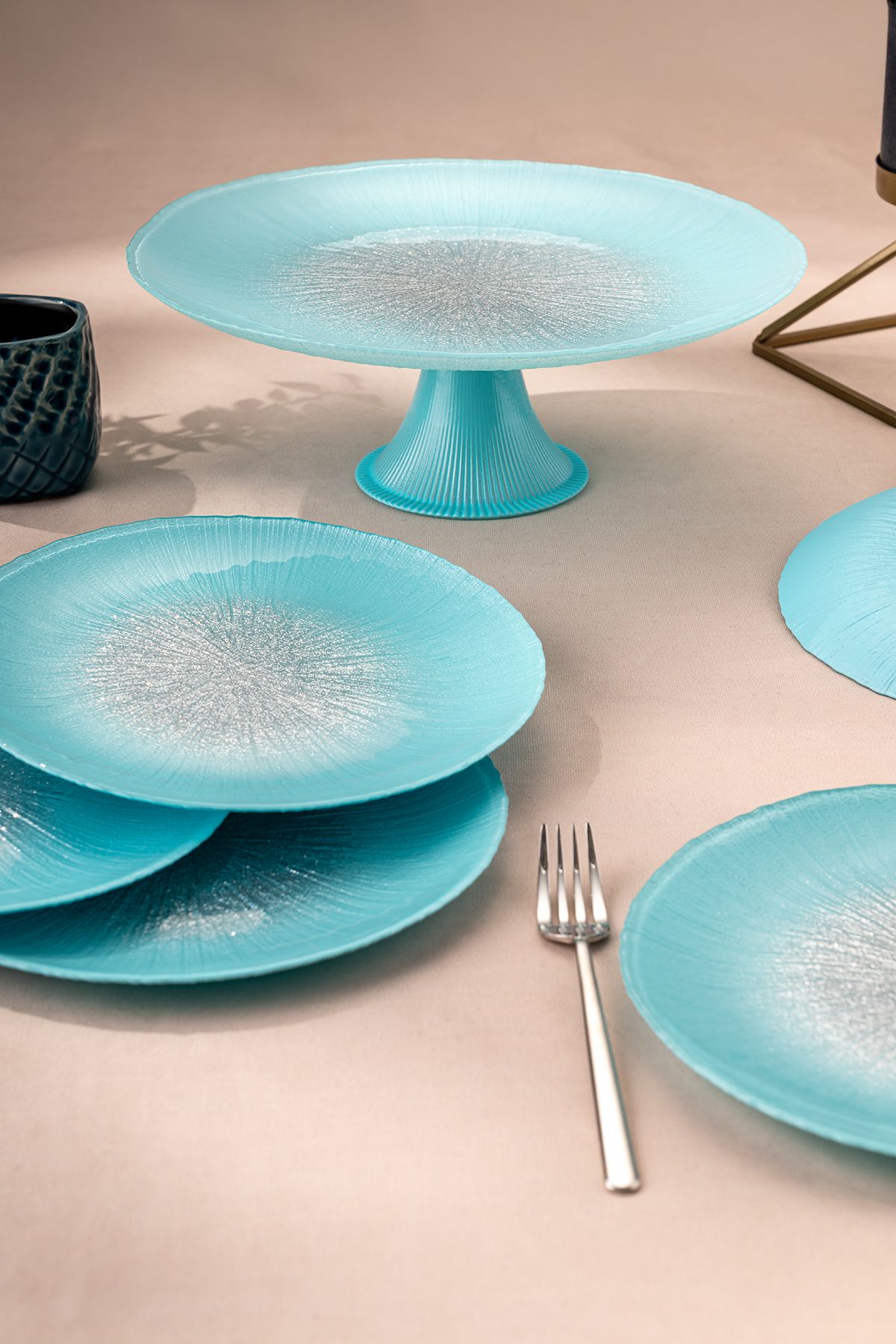 Emsan Pastel 7 Parça Cam Pasta / Tatlı Seti Mavi