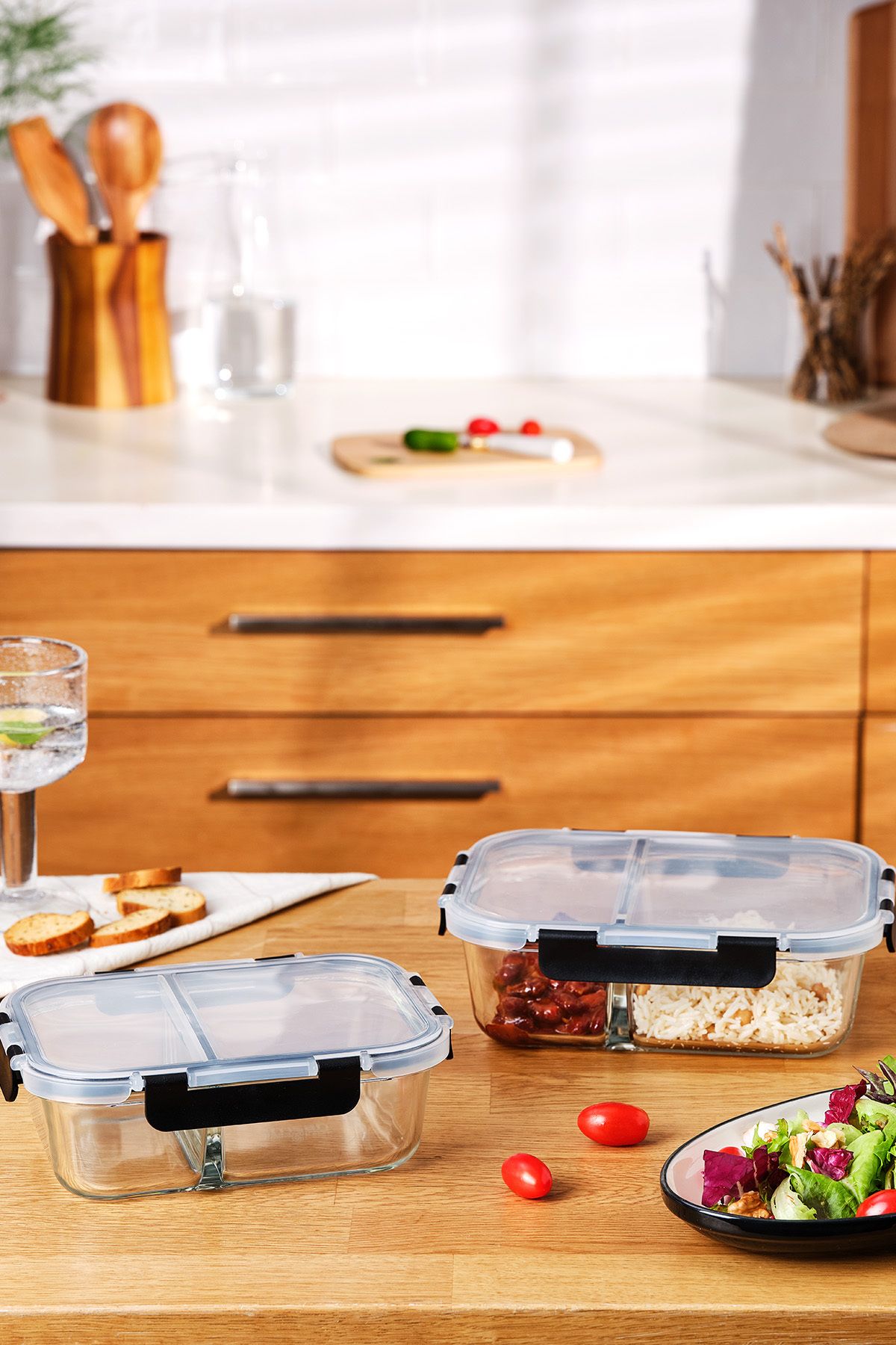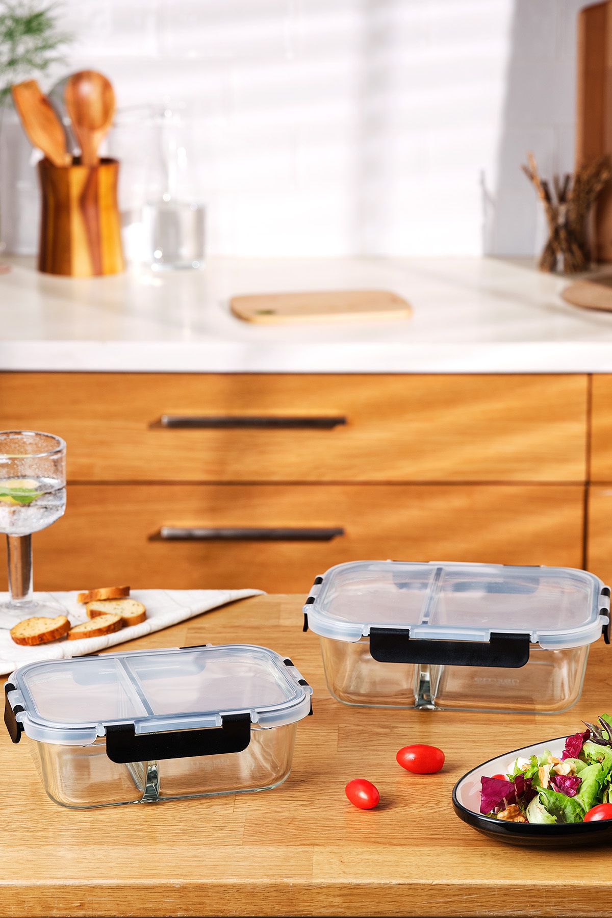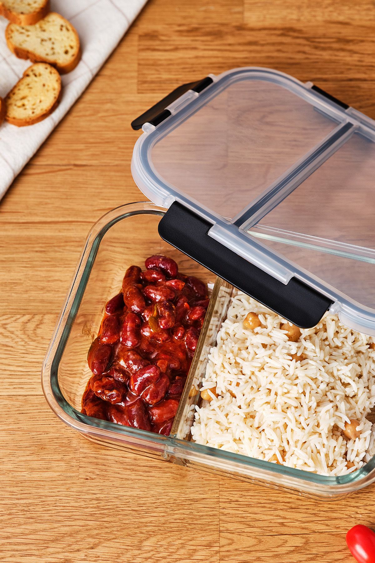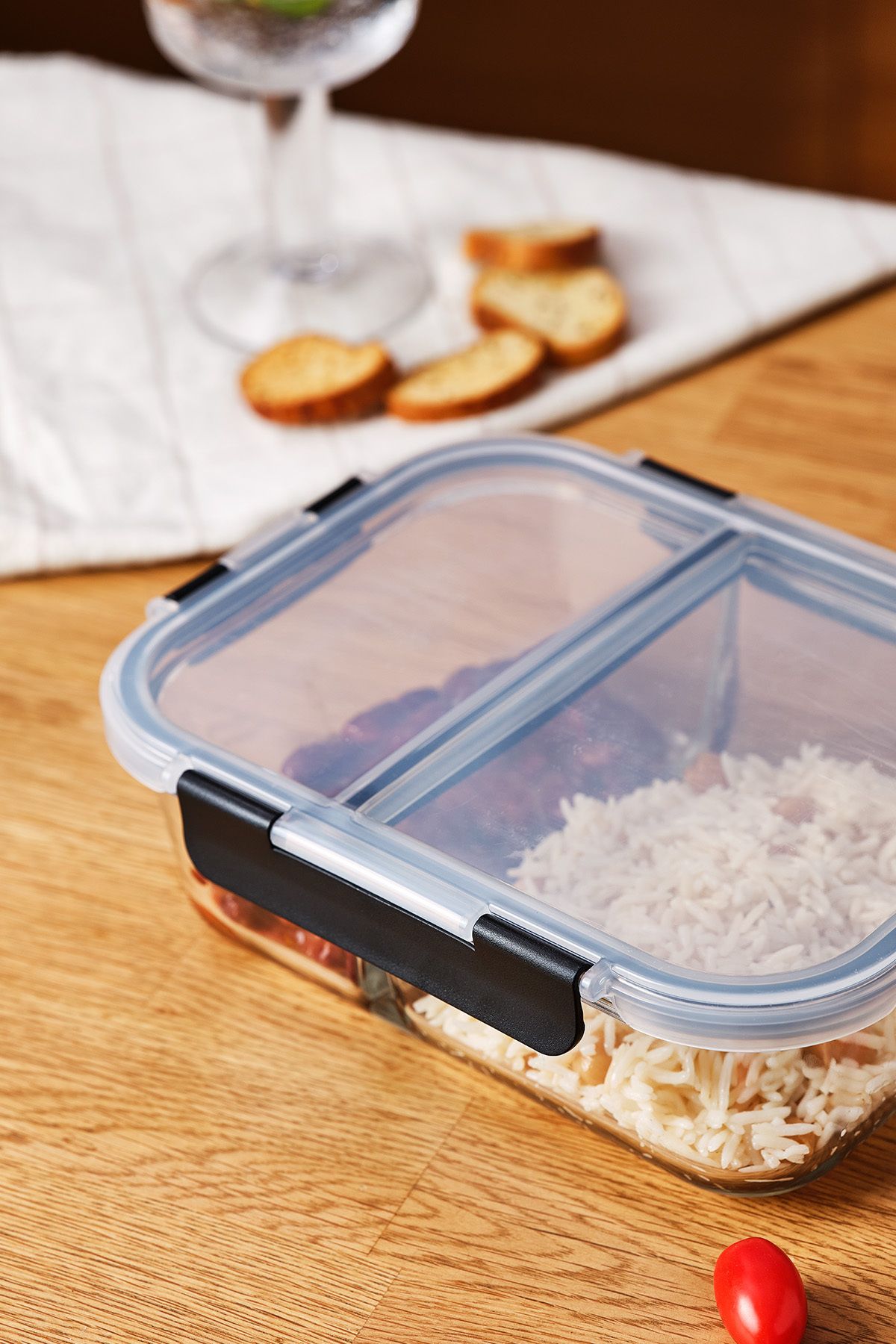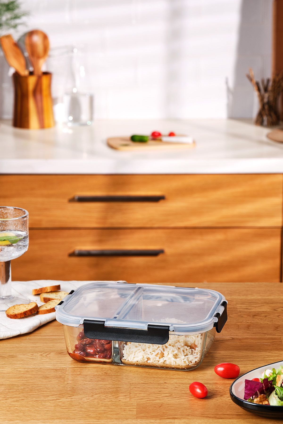 Tek parça halinde gelen bu saklama kabı, minimalist ve pratik kullanım sunar; Cam materyali sayesinde içerisindeki yiyeceklerinizi net bir şekilde görebilir ve kolayca erişebilirsiniz; 1360 ml kapasitesiyle geniş hacmi, büyük porsiyonları veya birden fazla öğeyi saklamak için idealdir;