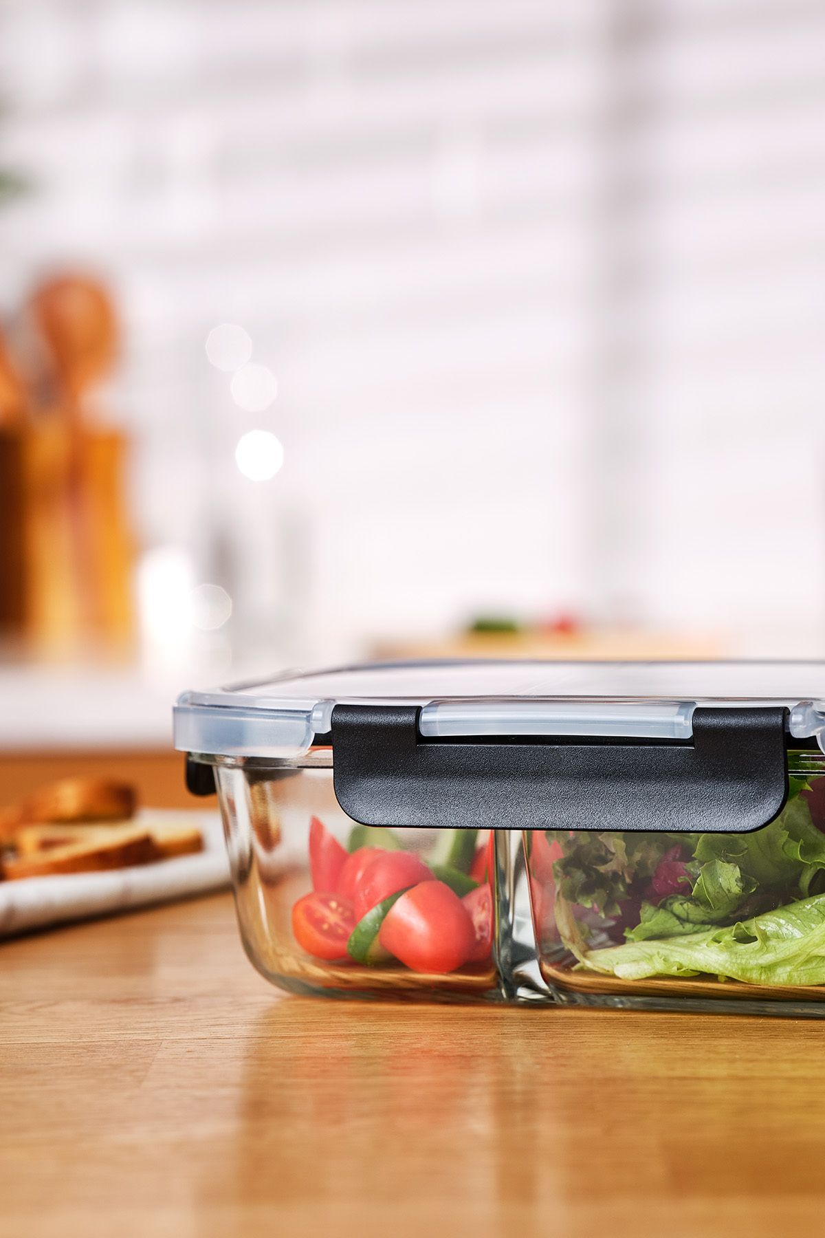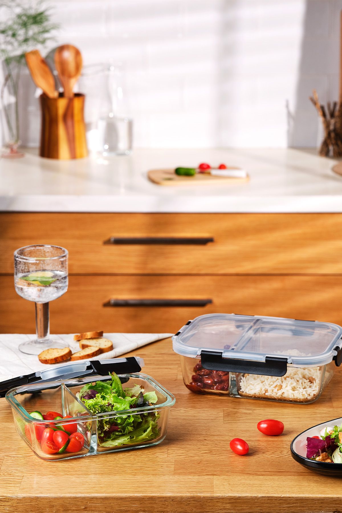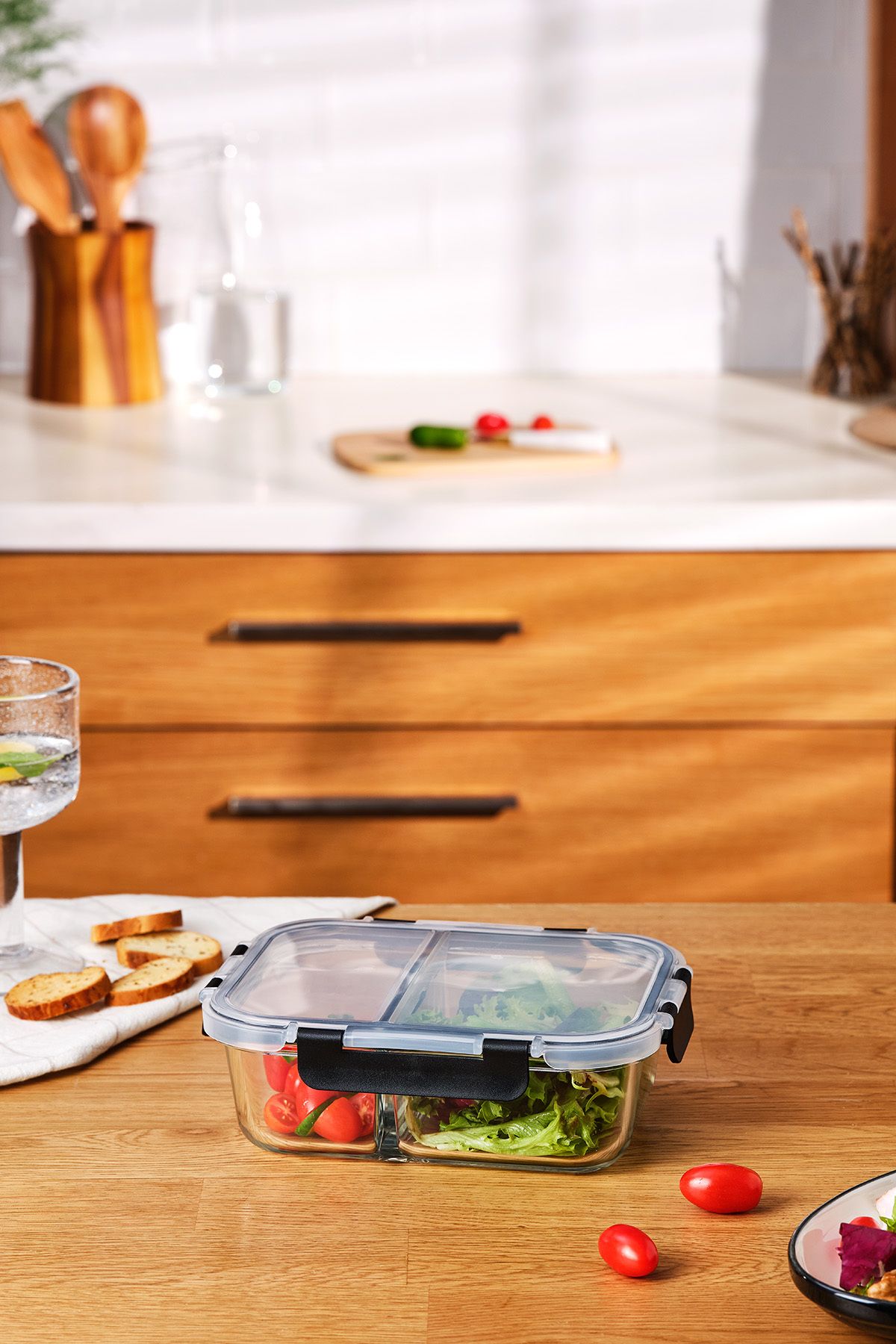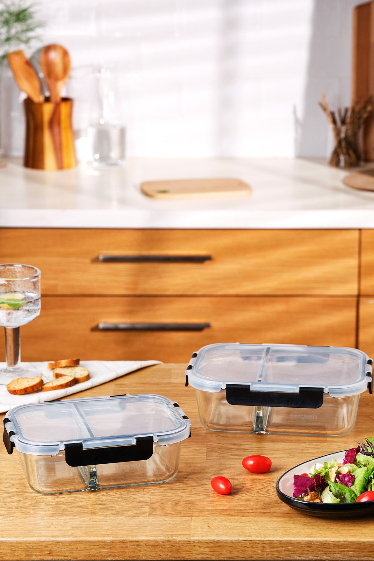 Cam malzemesi sayesinde şeffaf ve net bir görünüme sahip, içeriğin kolayca görülmesini sağlar; Tek parça halinde gelen bu saklama kabı, minimalist ve pratik kullanım sunar; 980 ml kapasitesiyle geniş iç hacmi, çeşitli yiyecek ve mutfak malzemelerini düzenli bir şekilde saklamak için idealdir;