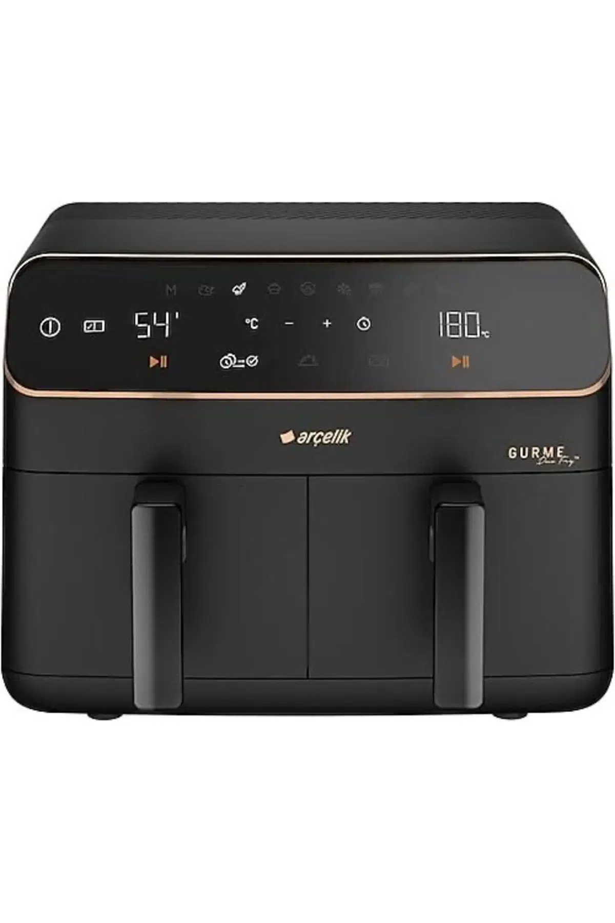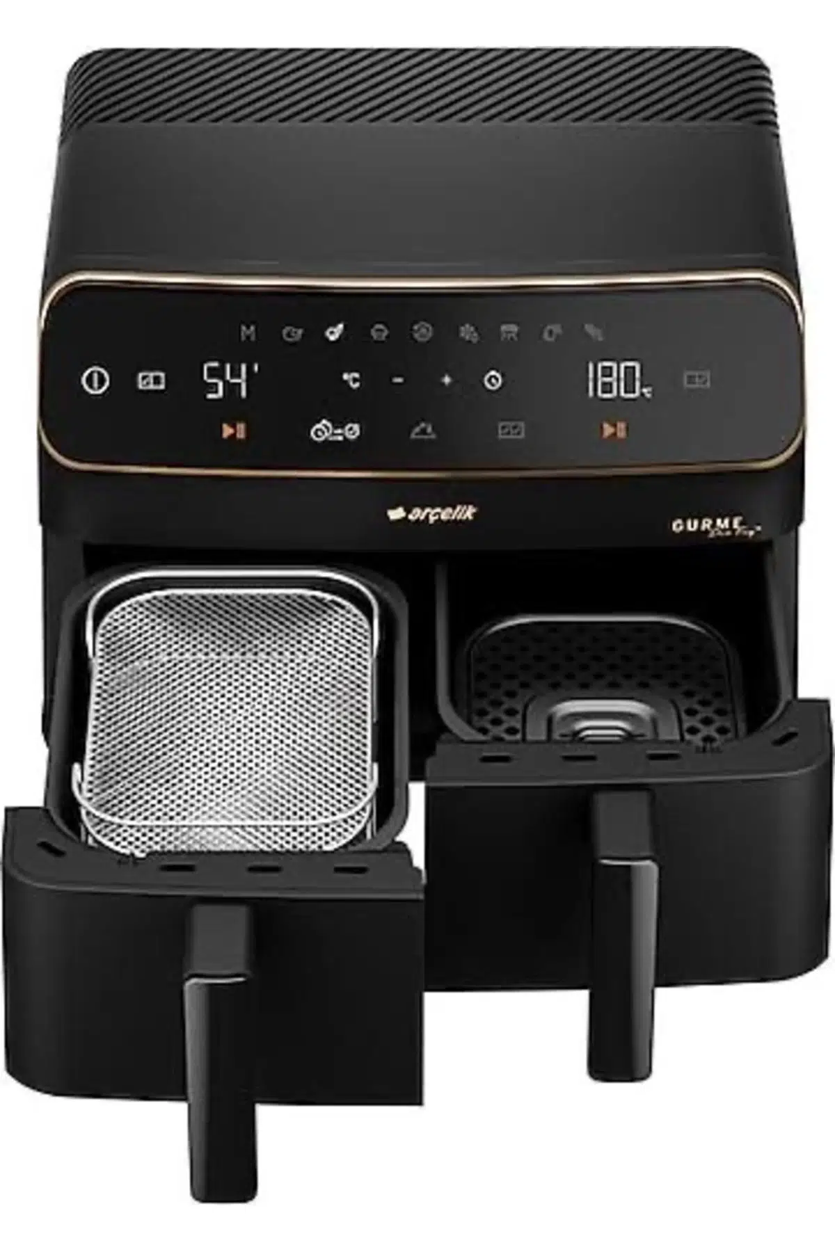 Duo Fry Teknolojisi “Duo Fry Teknolojisi ile 2 ayrı pişirme sepetinde(4,25 L+4,25 L, Toplam 8,5 L) aynı anda iki farklı yemeği koku karışımı olmadan hazırlayarak zamandan tasarruf edilmesini sağlar.; ” Akıllı Bitirme Teknolojisi Akıllı Bitirme Teknolojisiile farklı pişirme zamanına sahip 2 farklı yemeğin pişirme sürelerini ayarlayarak aynı anda pişirmenin tamamlanmasını sağlar.; Bu sayede aynı anda 2 farklı yemek sıcak olarak servis edilebilir.; Izgara, Kurutucu , Şiş aksesuar seçenekleriyle kullanıcı ilgili yemek programlarında aksesuarlar ile pişirme yaparak; yemek programından maksimum verimi alır.; Bulaşık makinesinde yıkanabilen aksesuarlar kolaylıkla temizlenebilir.; Gövde Malzemesi Plastik Sepet Metal, Tutma Saplı Sıcaklık Kontrolü Var Pişirme Haznesi Çıkarılabilir, yanmaz, yapışmaz Zamanlayıcı Var Kapak Çekmece Sistemi Çalışma Göstergesi Var İç Hazne Malzemesi Yapışmaz Kaplama Sıcaklık Ayarı Var Güç 2400 W Ağırlık 4.8 kg Yükseklik 31.4 cm Derinlik 36 cm Genişlik 41 cm Akıllı Bitirme Özelliği Var 2 Adet Hazne Var Bulaşık Makinesinde Yıkanabilir Aksesuarlar Var Otomatik Pişirme Program Sayısı 9 Haznelerini Eşleme Özelliği Var İç Hazne Kapasitesi 8.5 L Pişirme Kapasitesi 8.5 L