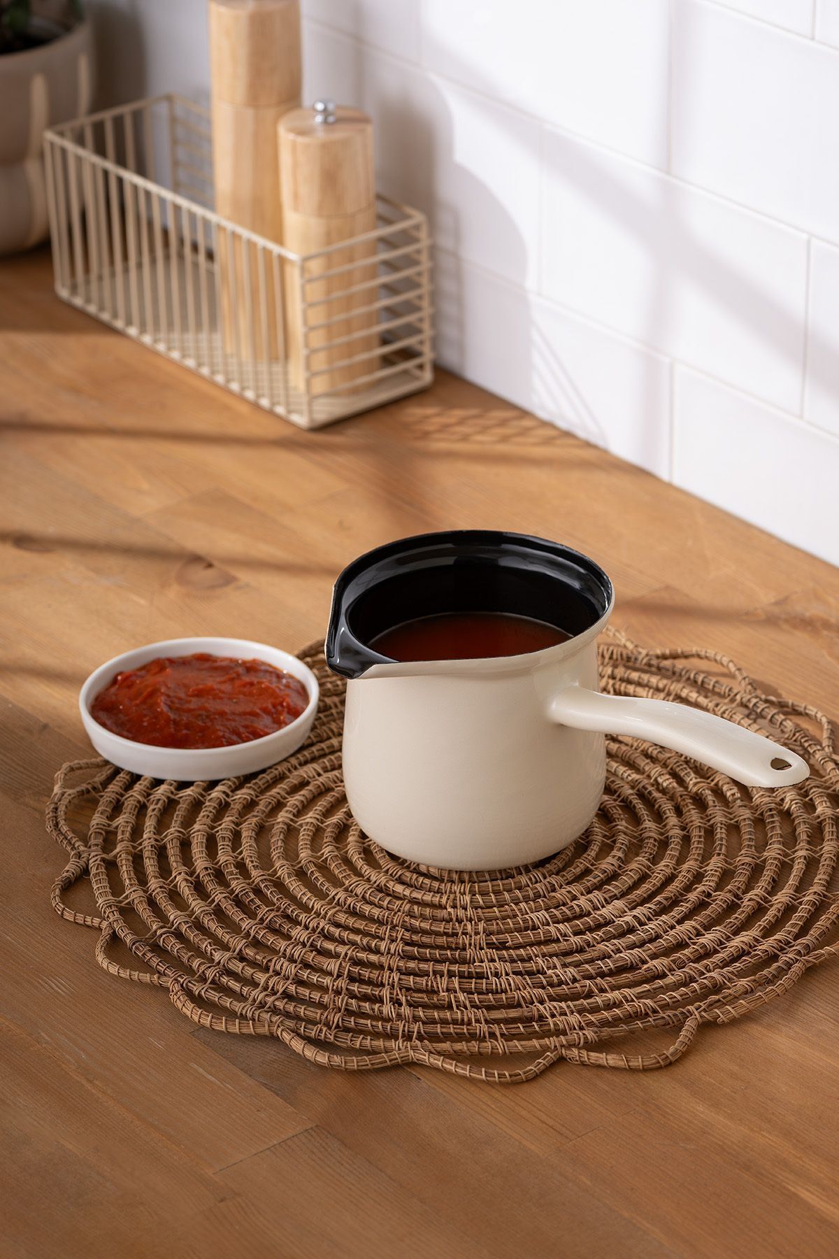 Emsan Hasbahçe Emaye Cezve 12 cm Malzeme: Emaye Hacim: 1 Litre Özellikler İndüksiyon dahil tüm ocaklara uygun.; Kolay temizlenir.; Sac üzerine sıvılaştırılmış emaye hammaddesinin uygulanarak 850-900 derecede fırınlanması ile camsı bir yüzey elde edildiğinden çizilmelere karşı dayanıklıdır.; Cam benzeri kaplaması nedeni ile sağlıklı pişirme materyalidir.; Uzun yıllar rengini korurBulaşık makinesinde yıkanabilir fakat, uzun ömürlü olması sebebi ile elde yıkamanız tavsiye edilir.;
