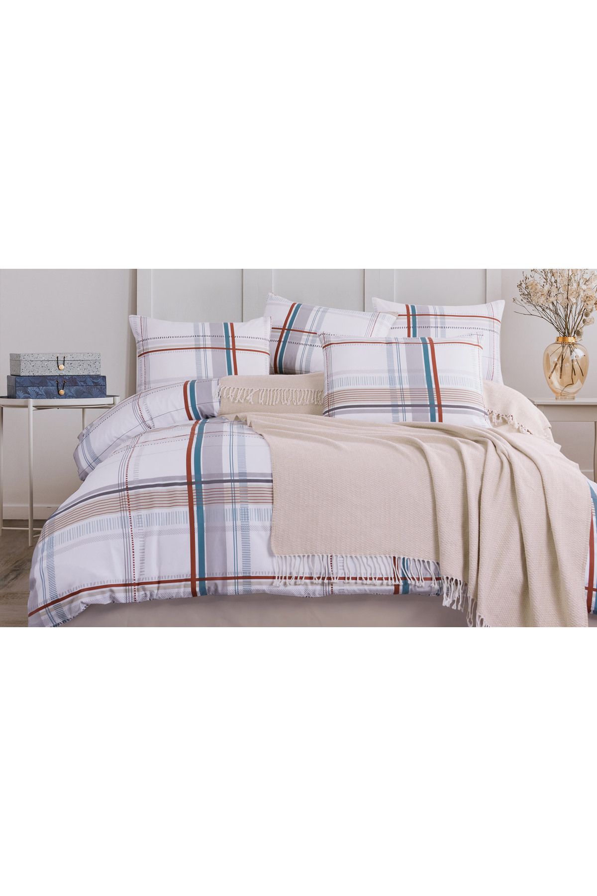 200 X 220 CM BATTANİYE; 200 X 220 CM NEVRESİM; 240 X 260 CM ÇARŞAF; 50 X 70 CM 2 ADET YASTIK KILIFI; BATTANİYE % 58 PAMUK , % 32 AKRİLİK , % 10 POLİESTER; NEVRESİM TAKIMI % 100 PAMUK; 30 DERECEDE YIKANABİLİR; KUTUSUNDA GÖNDERİM MARKA : SAREV;;