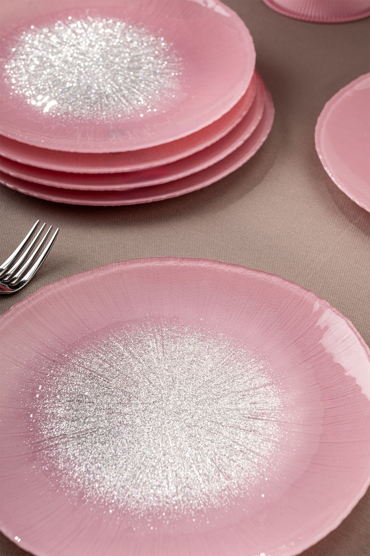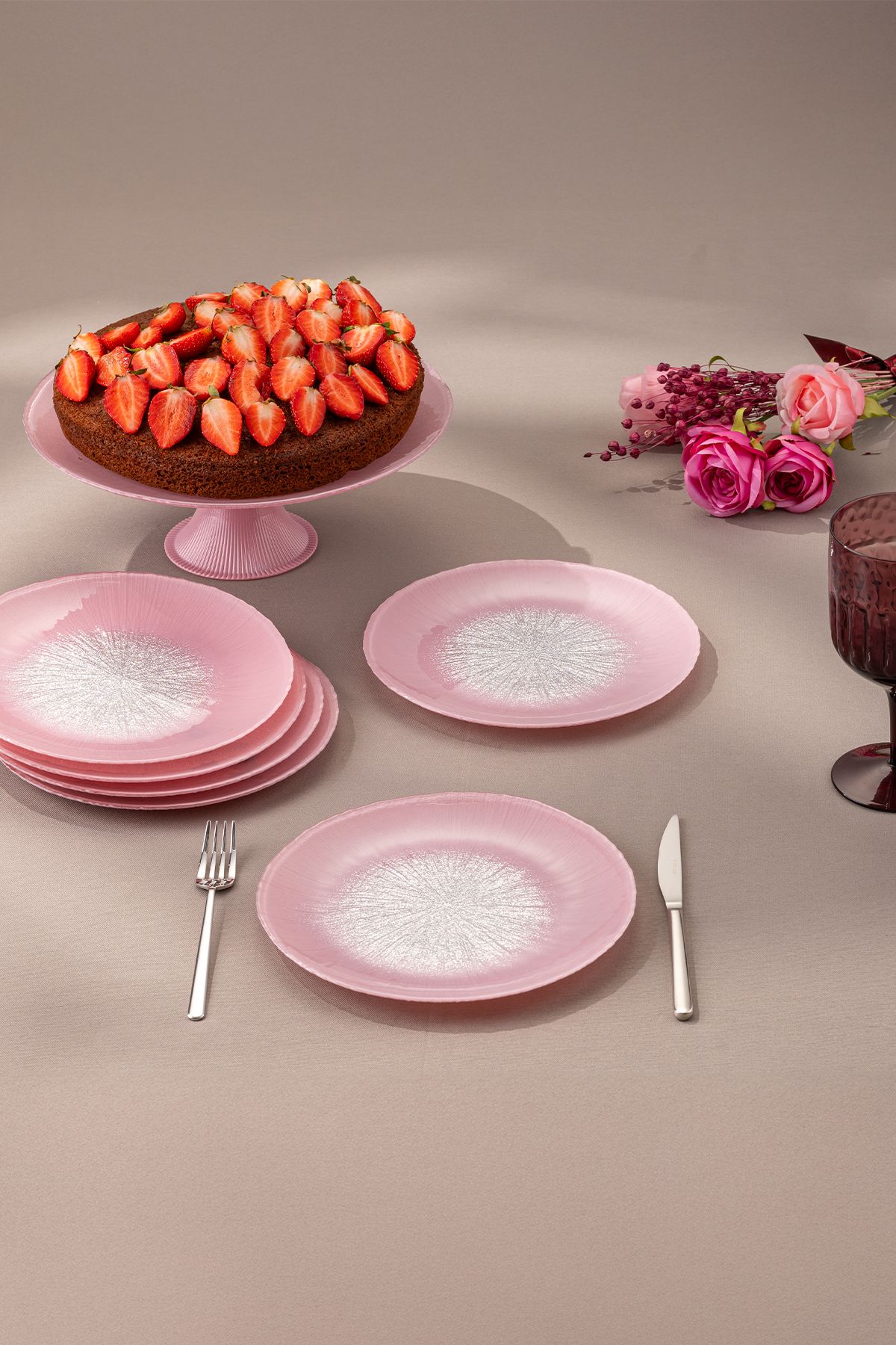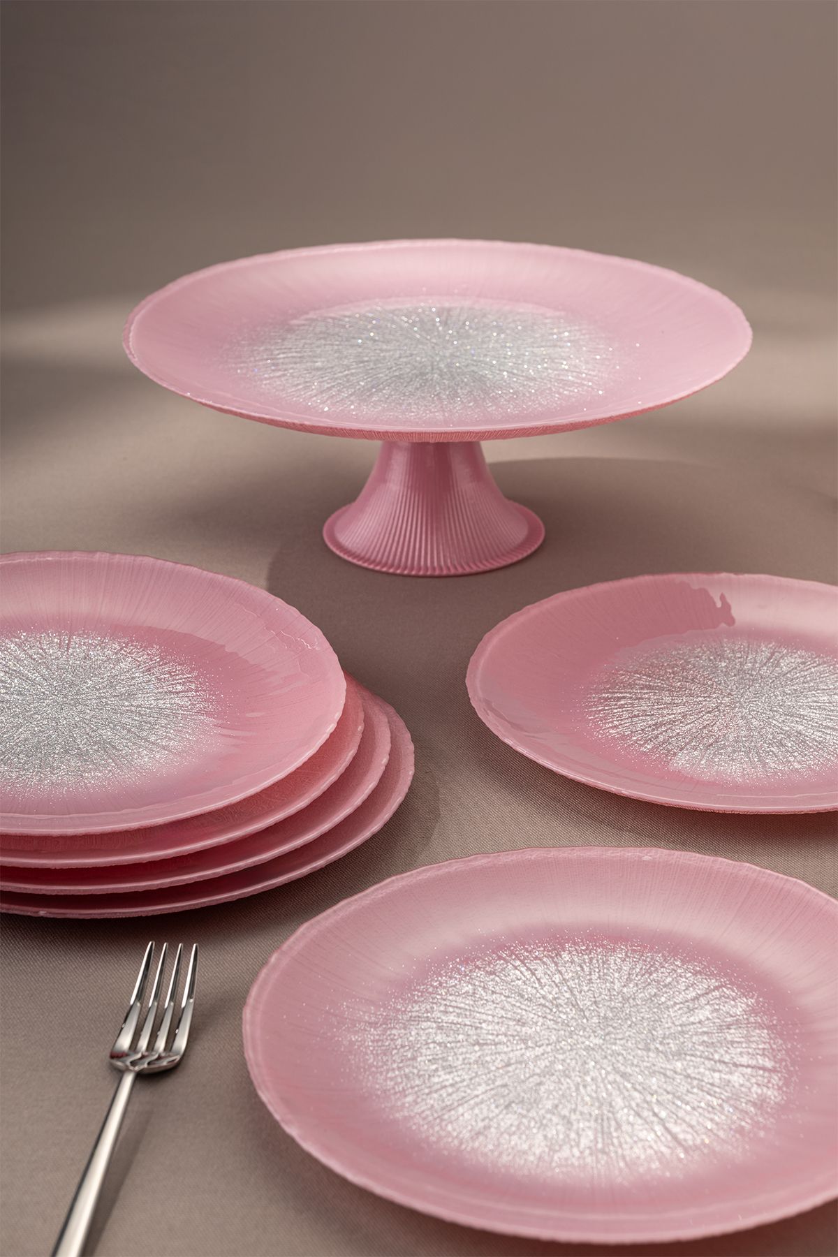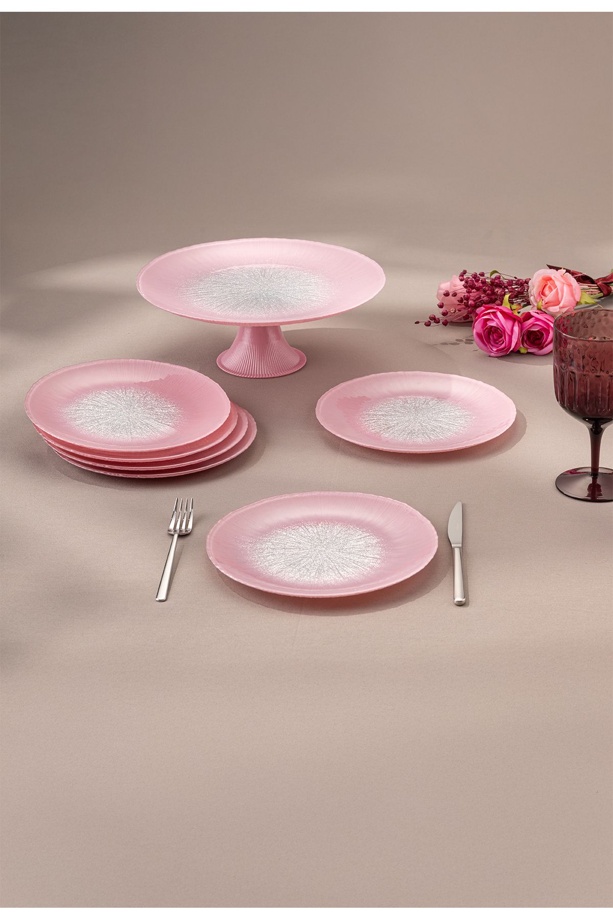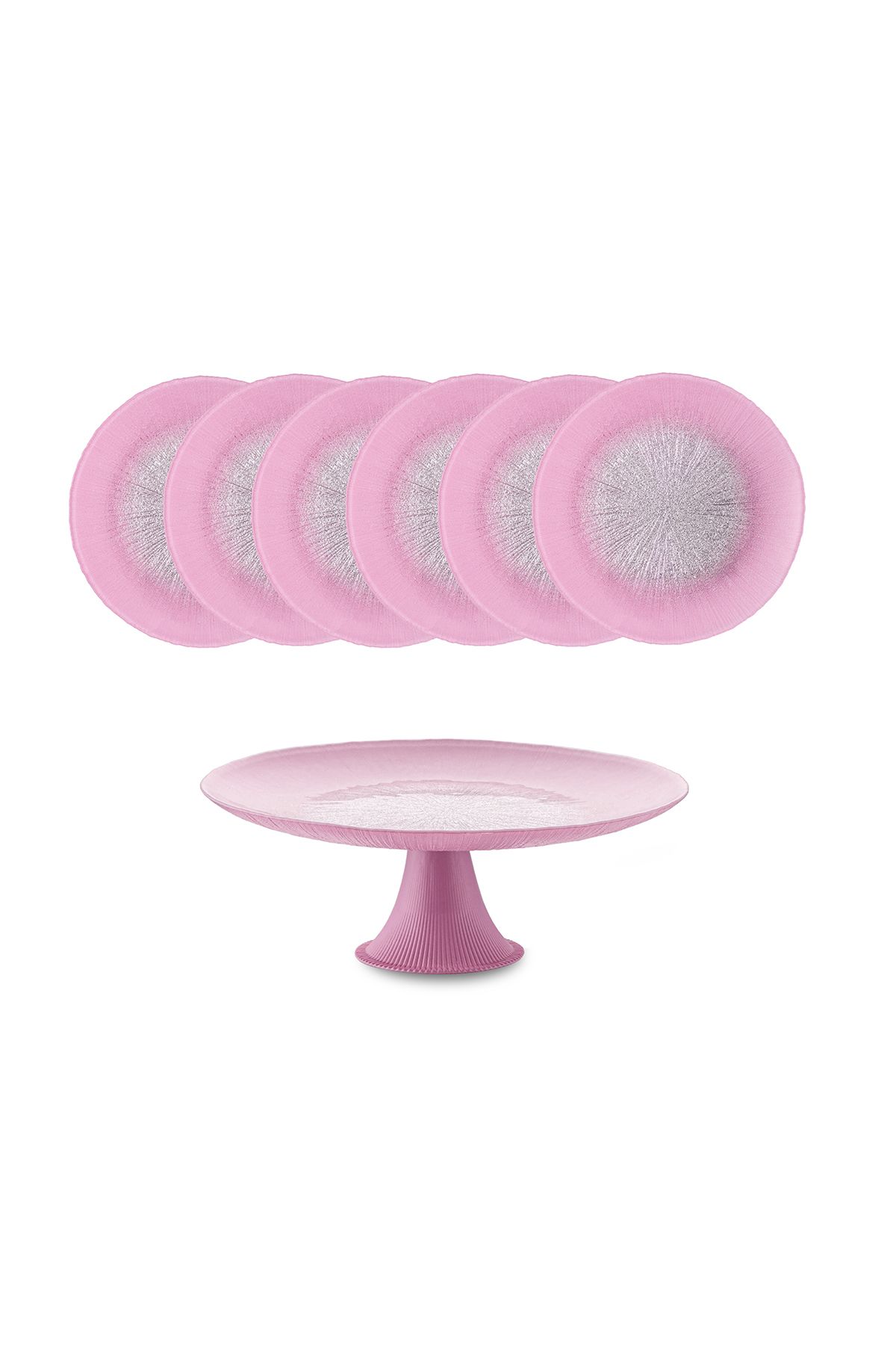 Pastel 7 Parça Cam Pasta / Tatlı Seti Pembe