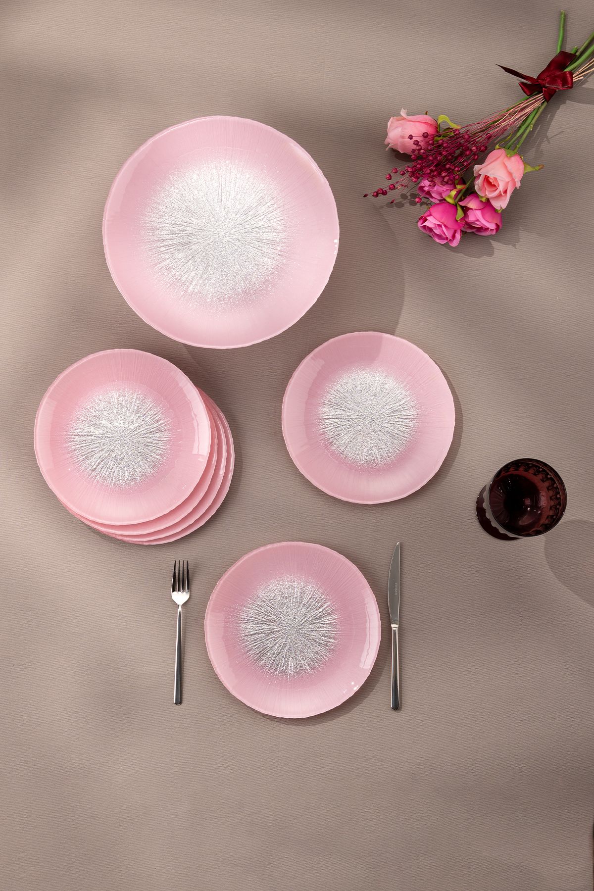 Emsan Pastel 7 Parça Cam Pasta / Tatlı Seti Pembe