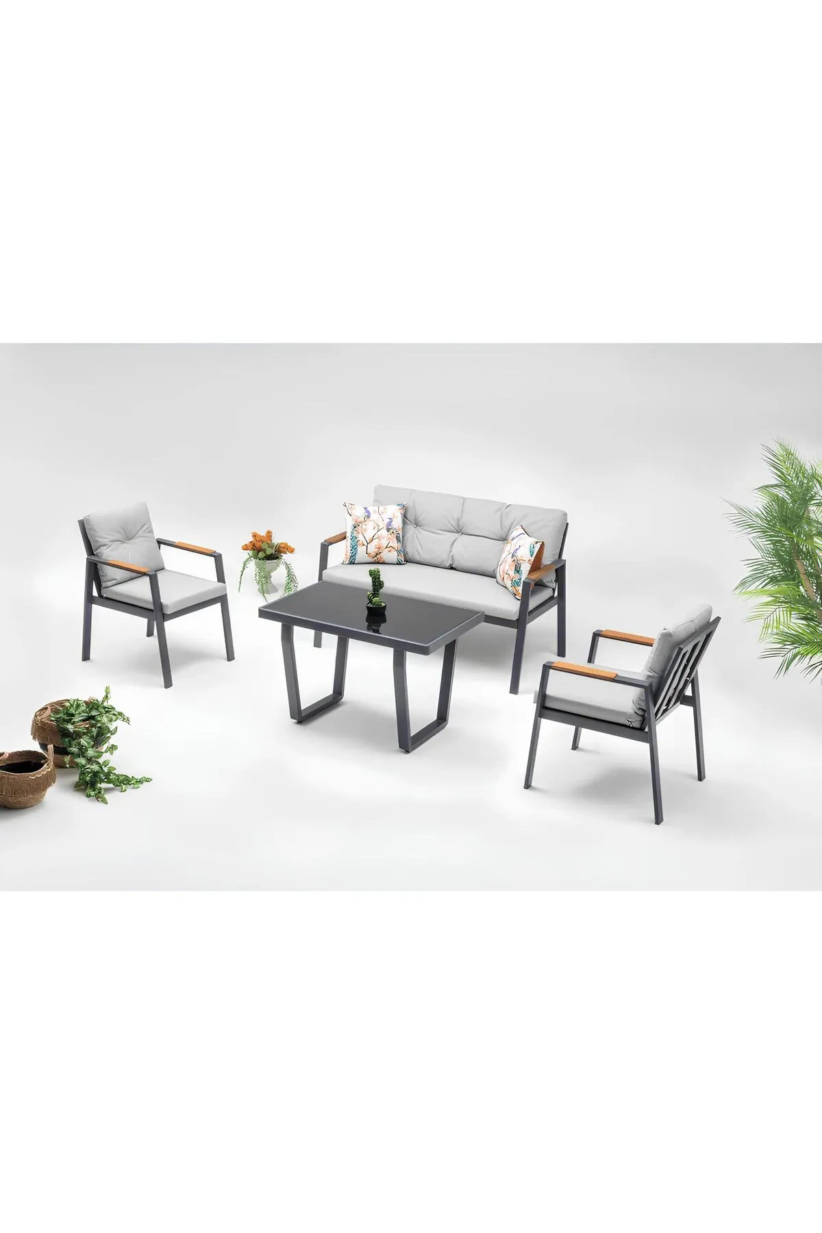 TERAZZİ EFES 2+1+1+CAMLI MASA 60X110 (ANTRASİT/GRİ)